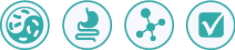 Симбіотичний комплекс містить оптимальну комбінацію пробіотика та пребіотиків для усунення порушення рівноваги мікрофлори кишківника, що характеризується такими симптомами як діарея, запор, здуття живота, метеоризм, нудота, блювання, відрижка, біль у животі. Компоненти мікрофлори підтримують рівновагу імунної та нервової системи, беруть участь у синтезі амінокислот, білків та вітамінів, посилюють всмоктування іонів кальцію, заліза та вітаміну D.