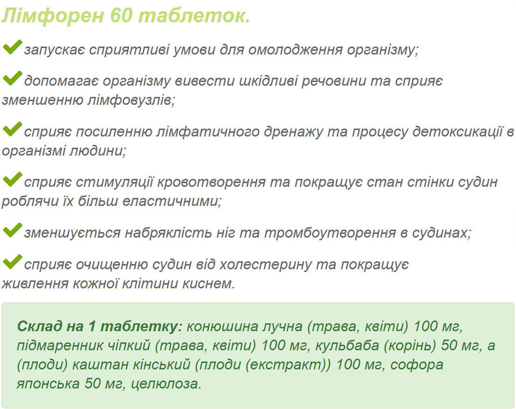 "Лімфорен" 2 таблетки / 2 рази на день під час їжі 2 тижні;